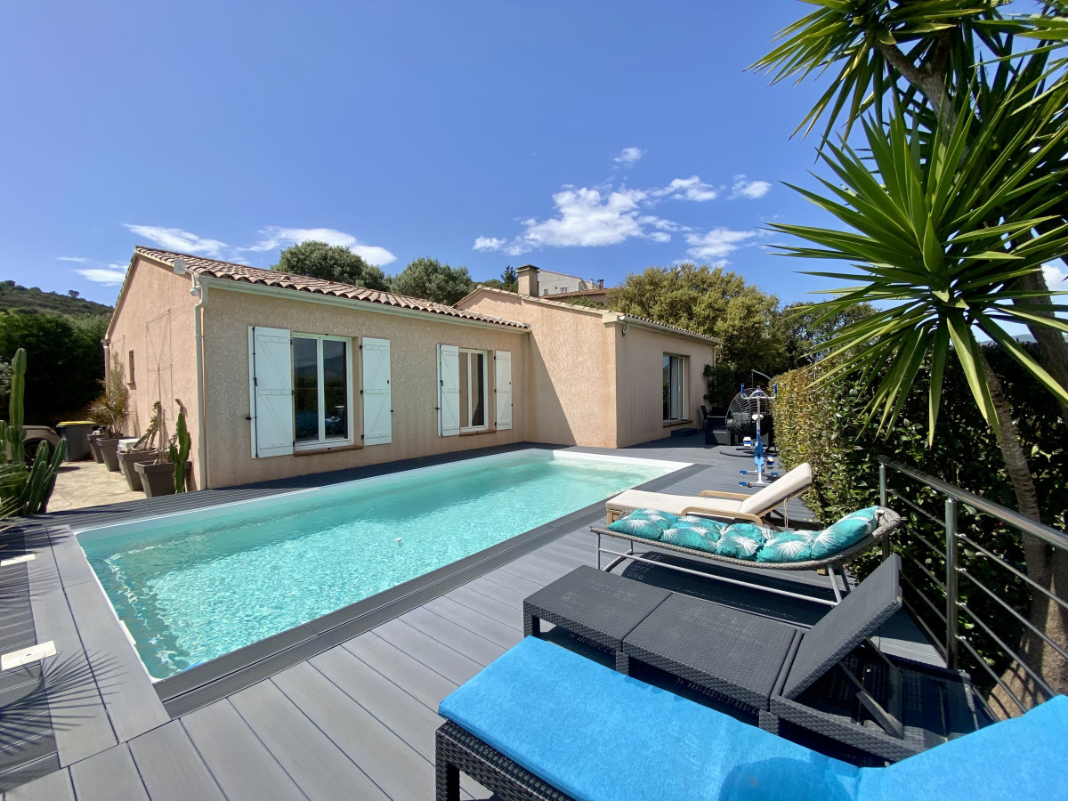Au sein de la résidence Confina 2, à deux minutes des commerces et 10 minutes de l'aéroport d'Ajaccio et des plages, venez découvrir une charmante villa de 122m² édifiée sur un terrain de 1030m².