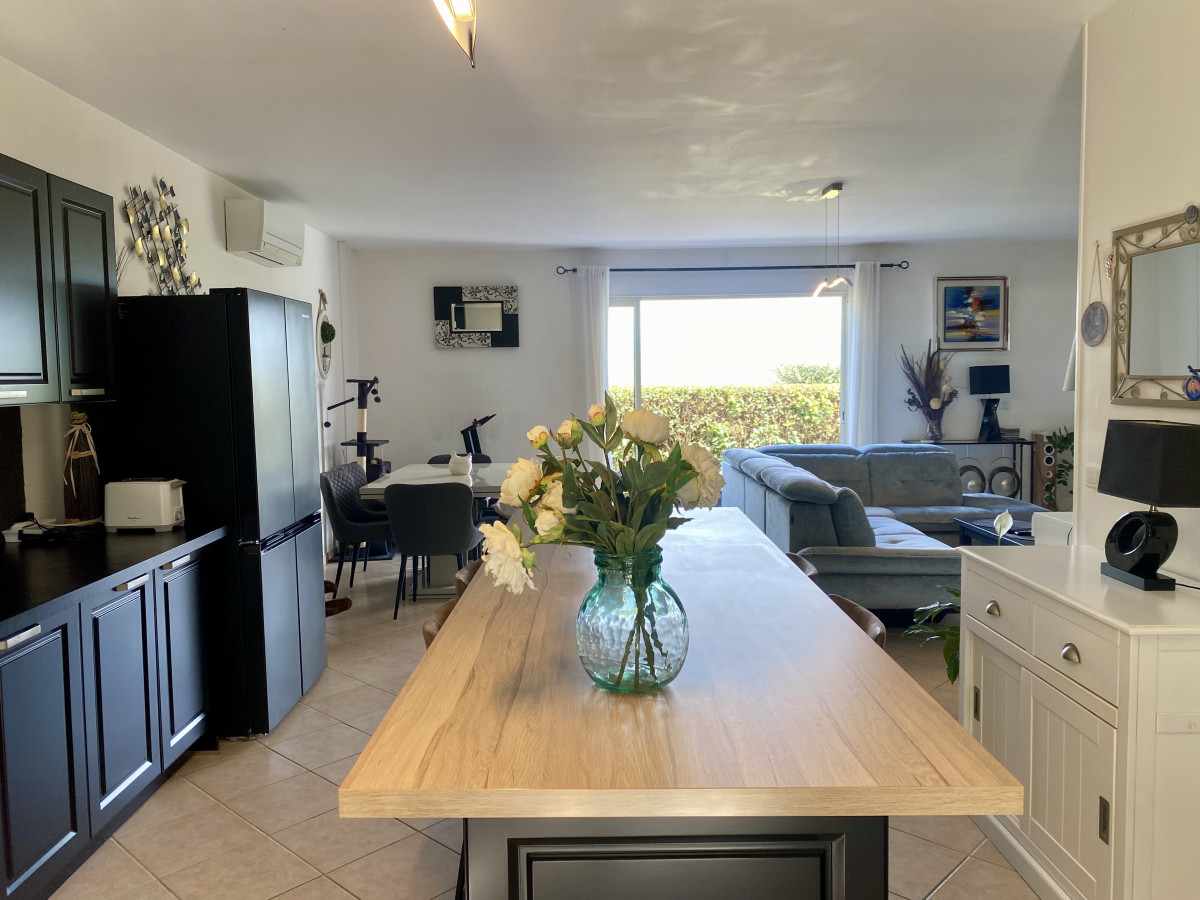 La maison se compose d'une entrée sur hall distribuant un vaste séjour/salle à manger donnant accès à la terrasse.